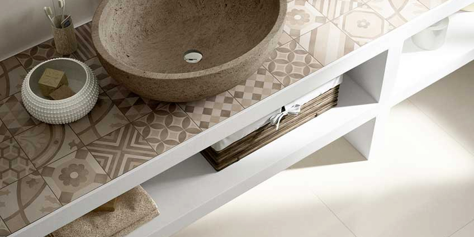 Высокая износоустойчивость вместе с неповторимой поверхностью сделали ее востребованной у современных дизайнеров. С помощью плитки Блок / Block они создают неподражаемые интерьеры. Разнообразие оттенков – какао, беж, лазурь – поможет воплотить все фантазии в реальность.